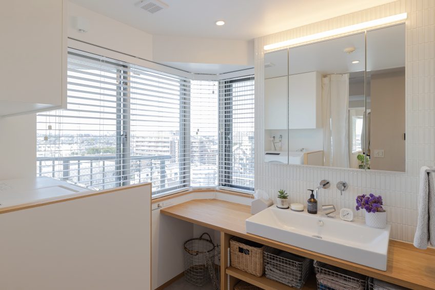 1日の始まりが心地良くなる、明るく見晴らしの良い洗面所(志木Sさんの家)